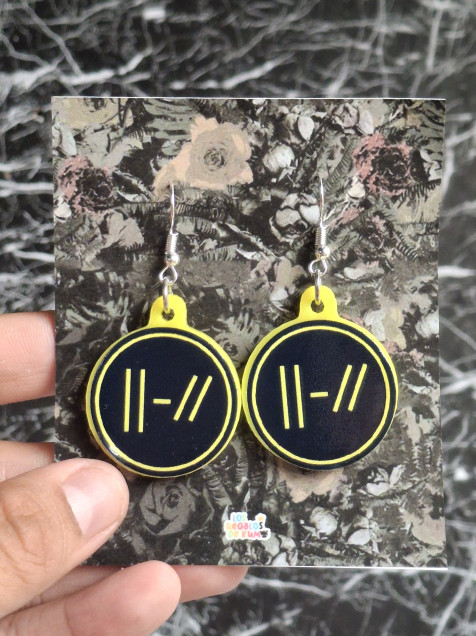 Aretitos inspirados en 𝚝𝚠𝚎𝚗𝚝𝚢 𝚘𝚗𝚎 𝚙𝚒𝚕𝚘𝚝𝚜, elaborados de acrílico y hechos con mucho cariño.♡