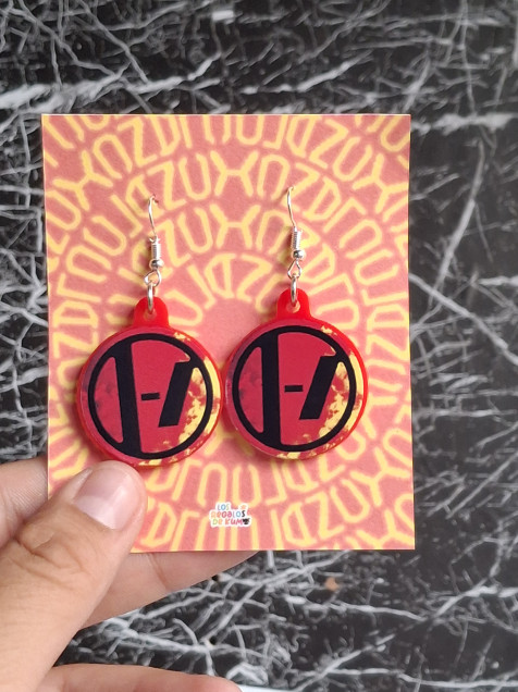 Aretitos inspirados en 𝚝𝚠𝚎𝚗𝚝𝚢 𝚘𝚗𝚎 𝚙𝚒𝚕𝚘𝚝𝚜, elaborados de acrílico y hechos con mucho cariño.♡