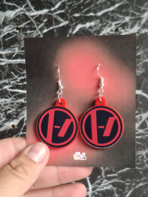 Aretitos inspirados en 𝚝𝚠𝚎𝚗𝚝𝚢 𝚘𝚗𝚎 𝚙𝚒𝚕𝚘𝚝𝚜, elaborados de acrílico y hechos con mucho cariño.♡
